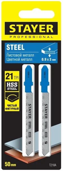 Полотна по металлу (2 шт, 50х1.2 мм, HSS, Т-хвост., Т218А) для эл/лобзика Stayer