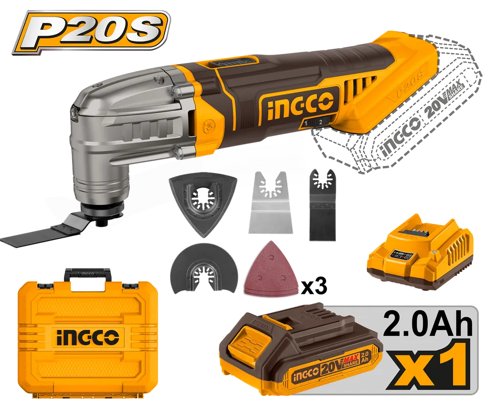Реноватор аккумуляторный INGCO CMLI20228, 20В, Li-Ion 1х2Ач, 4 насадки
