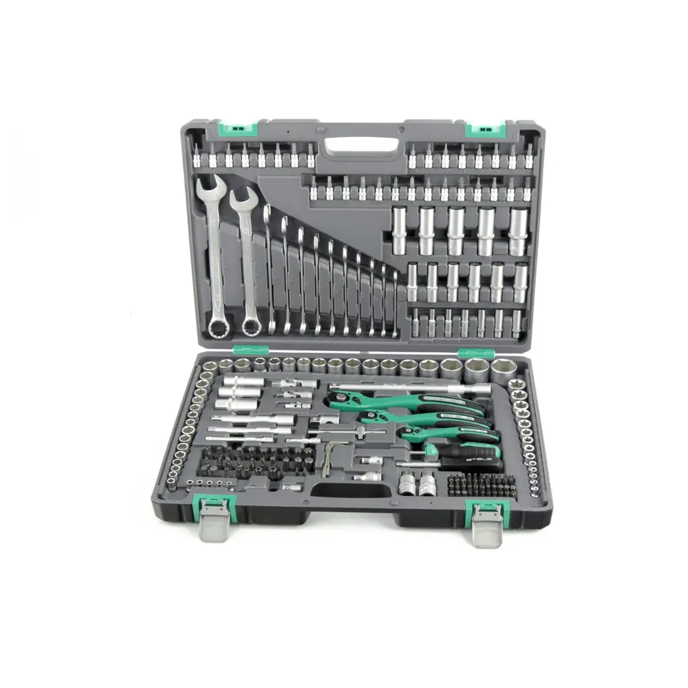 Набор инструментов Stels 14115 из сталей CrV и S2, в усиленном кейсе, состоит из 216 предметов с присоединительными размерами 1/4", 3/8" и 1/2", предназначенных для монтажа и демонтажа резьбовых соединений. В комплект входят приспособления, облегчающие работу в труднодоступных местах — вороток, удлинители и карданные шарниры. Кейс из ударопрочного жесткого пластика имеет металлические застежки и обеспечивает сохранность инструментов во время хранения и транспортировки. Набор подойдет для авторемонта в гараже или условиях автосервиса.