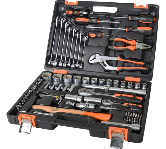 Набор инструмента ВИХРЬ предназначен для ремонта автомобилей, мотоциклов, садовой и другой техники. Подходит как для использования на станциях технического обслуживания, так и в бытовом применении дома или на даче. Инструмент изготовлен в соответствии с международными стандартами. Головки и комбинированные ключи изготовлены из хромованадиевой стали, придающей инструменту высокую твердость и легкость. Биты, биты-вставки и отвёртки производятся из стали S2, улучшающей характеристики крутящего момента и твёрдости. Все наборы упакованы в кейс, изготовленный из жесткого противоударного пластика, с металлическими застёжками.
