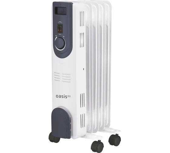 Обогреватель масляный Оазис OT-10 Pro, 1кВт, с механическим управлением, 5 секций цвет белый