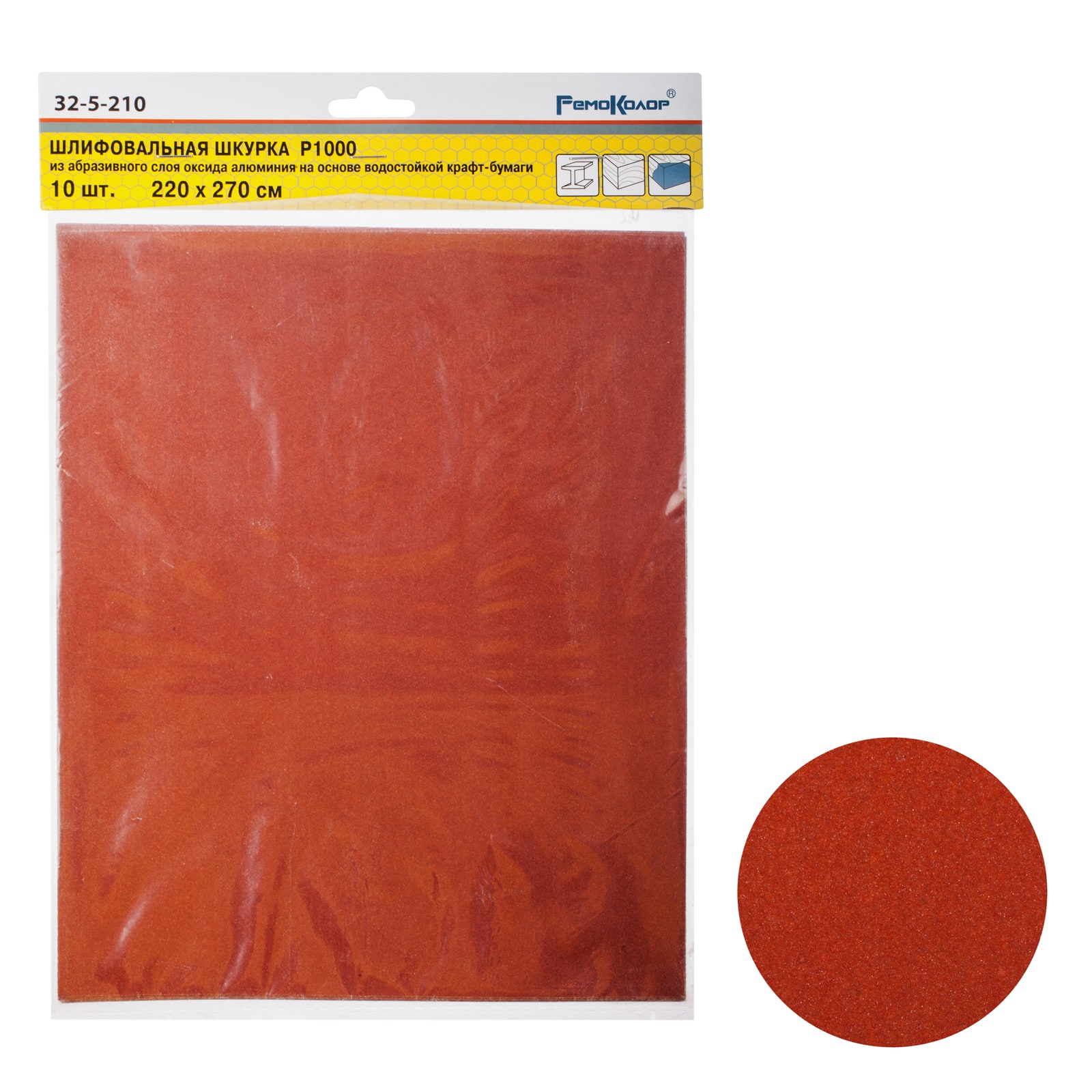 Шлифовальный лист на бумажной основе, оксид алюминия, водостойкий, Р1000, 220х270мм (10шт)