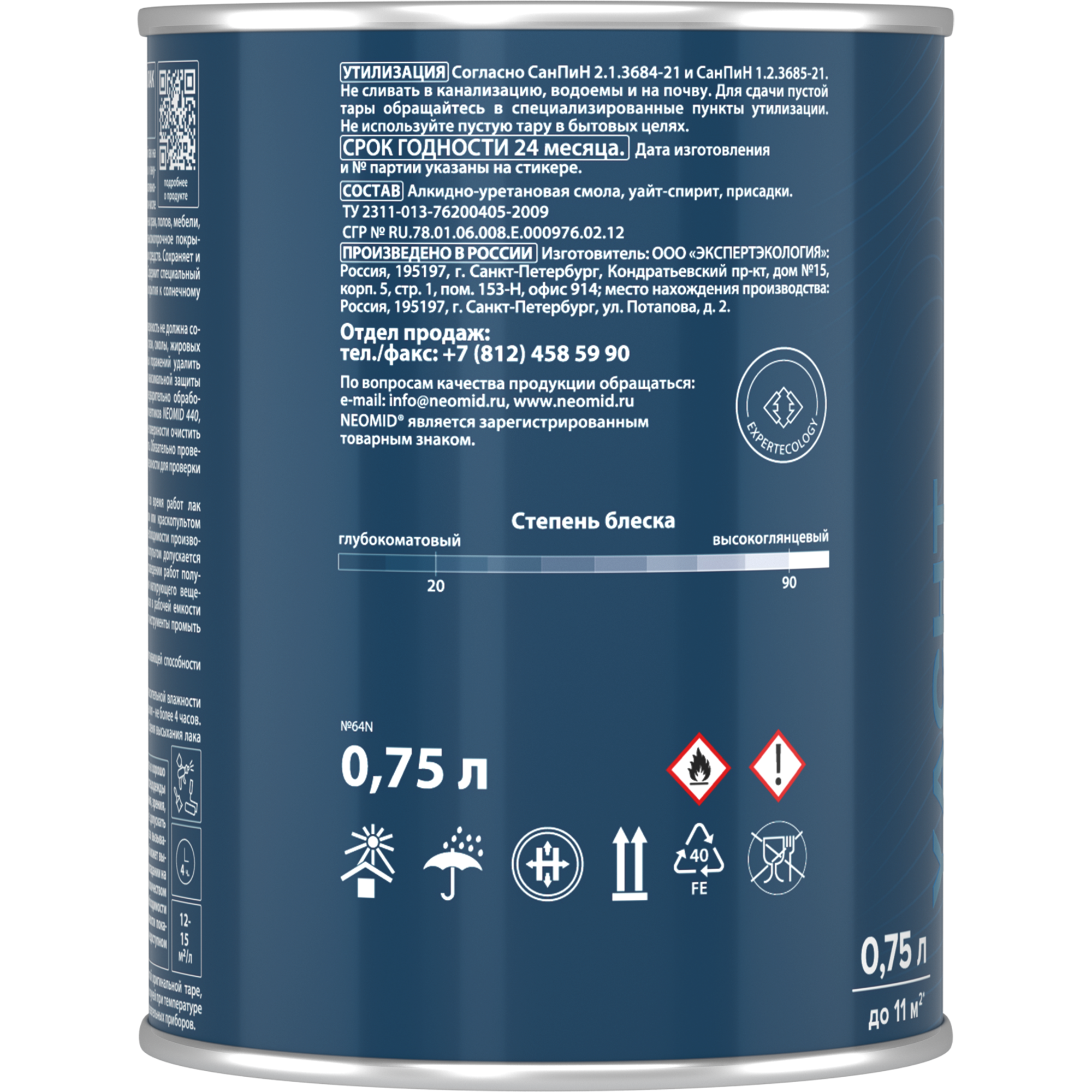 Лак яхтный Неомид глянцевый алкидно-уретановый 0,75л