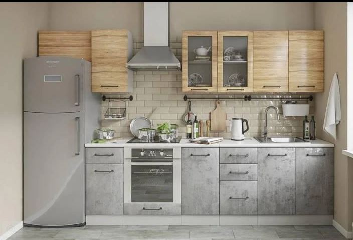 Комплект кухонной мебели ЛОФТ Бетон светлый/Дуб цикорий со столешницей Марсель