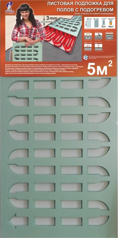 Подложка листовая с вырубкой для полов с подогревом 1000*500*3мм,зеленая/уп.5м2/ТМ Солид
