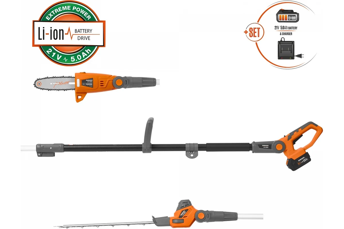Пила-высоторез аккумуляторная DAEWOO DAPH 2221Li SET, 21В, Li-Ion 1х5Ач