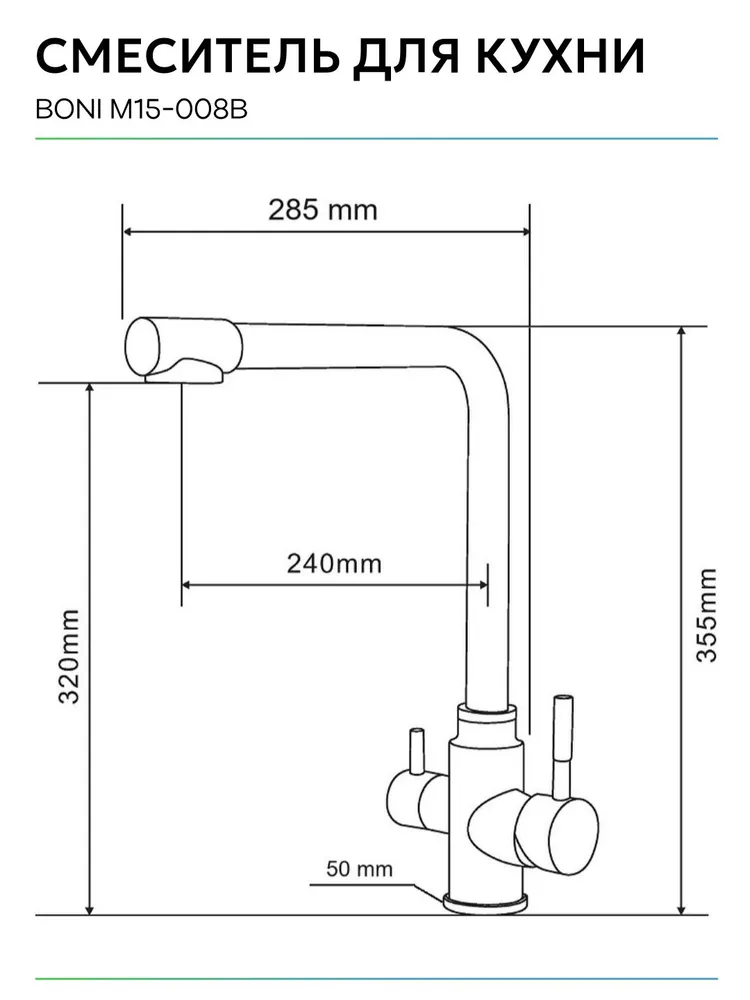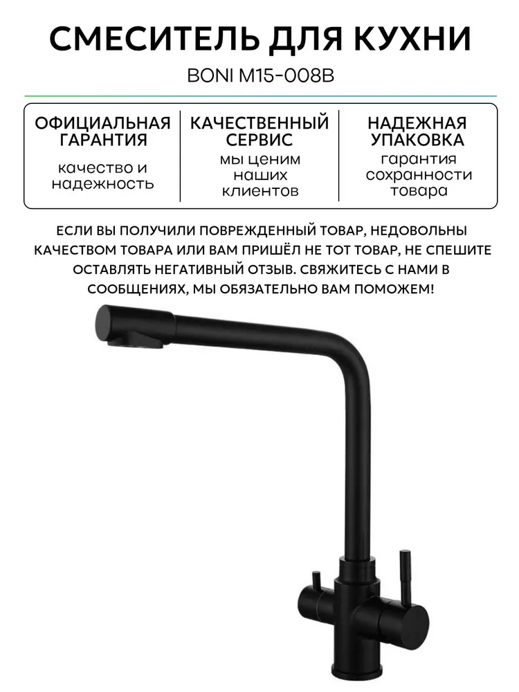 Смеситель для кухни BONI M15-008b однорычажный с каналом питьевой воды цвет черный