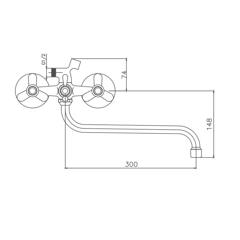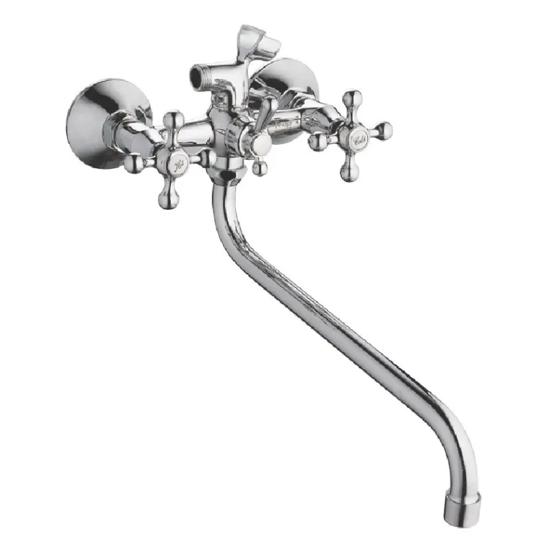 Смеситель для ванны CN2208 двухвентильный длинный излив с лейкой и шлангом цвет хром