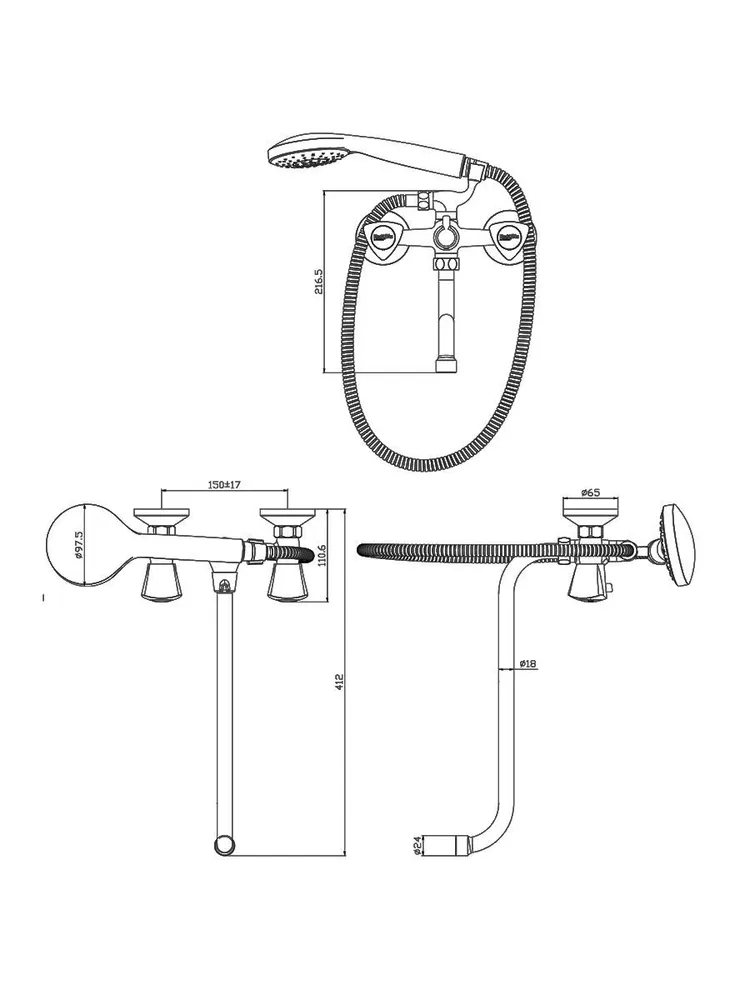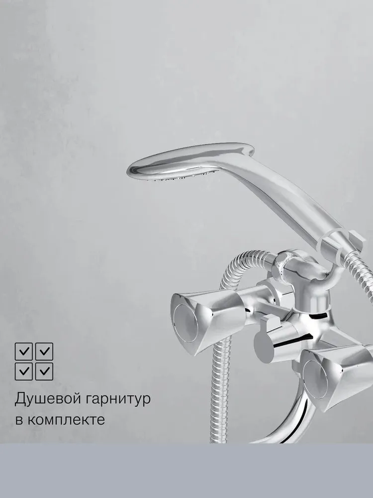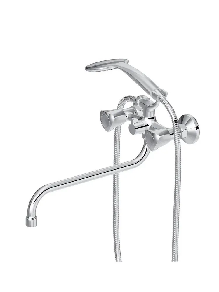 Смеситель для ванны OBJECT 349500000 двухвентильный длинный излив с лейкой и шлангом цвет хром