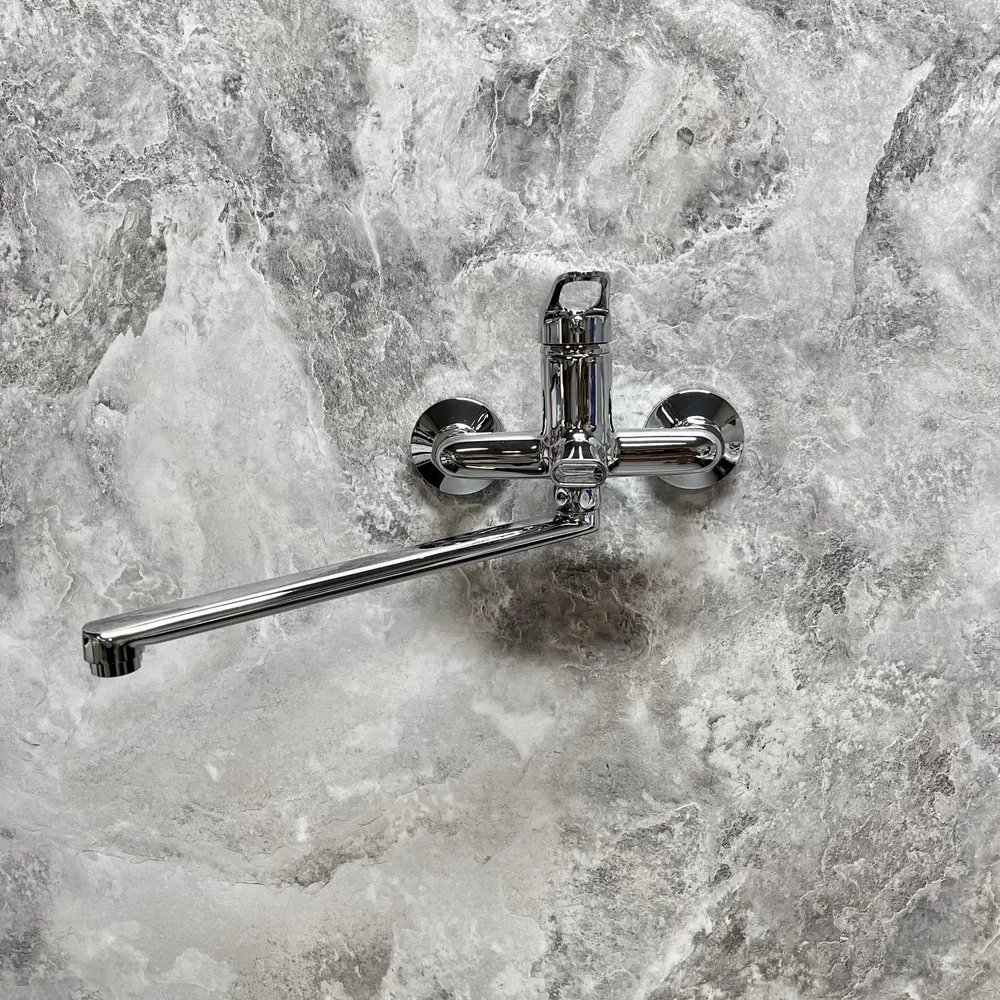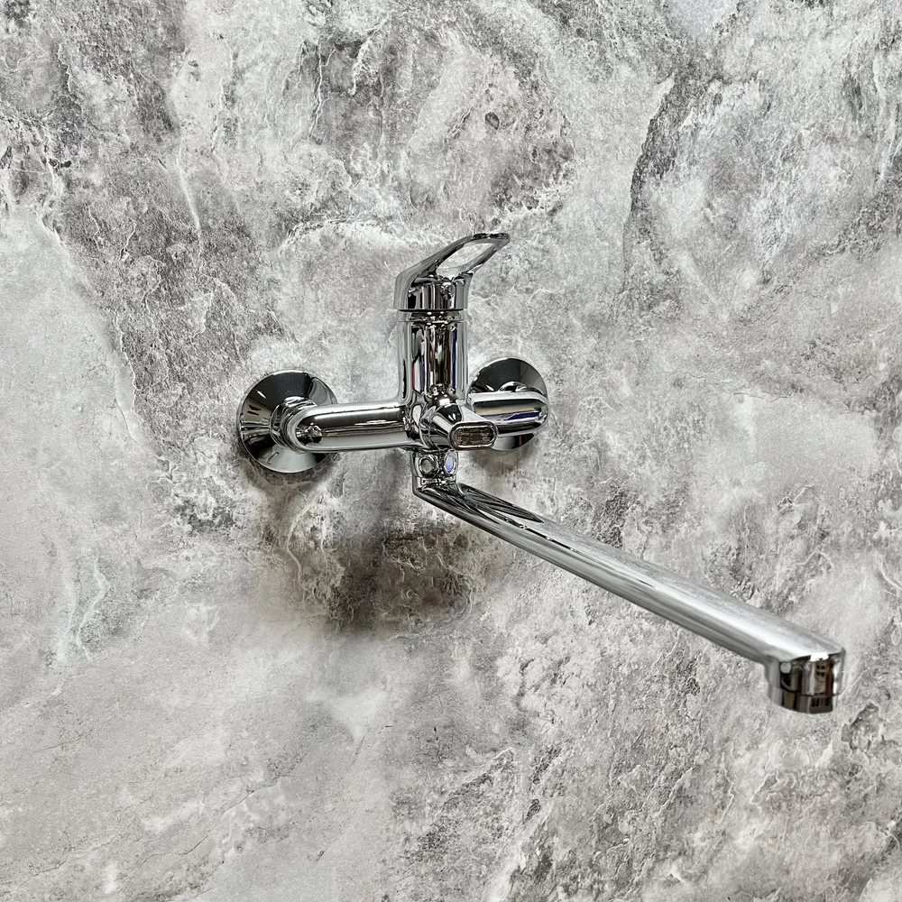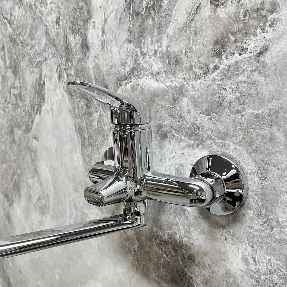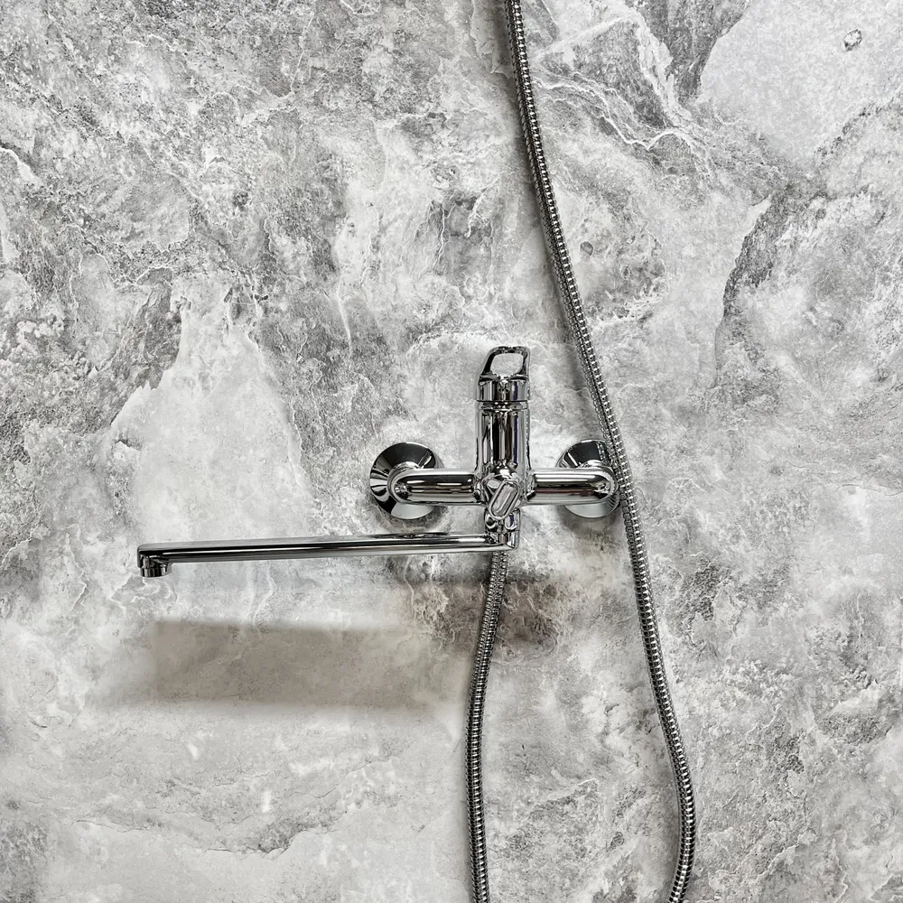 Смеситель для ванны HB2213 однорычажный длинный излив с лейкой и шлангом цвет хром