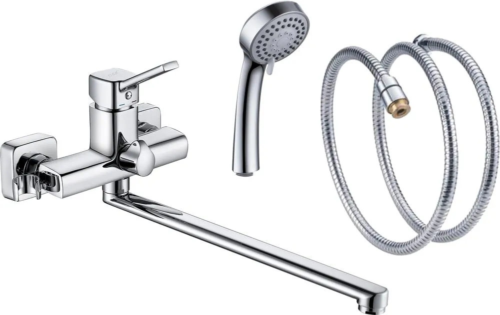 Смеситель для ванны DA1493301 однорычажный длинный излив с лейкой и шлангом цвет хром