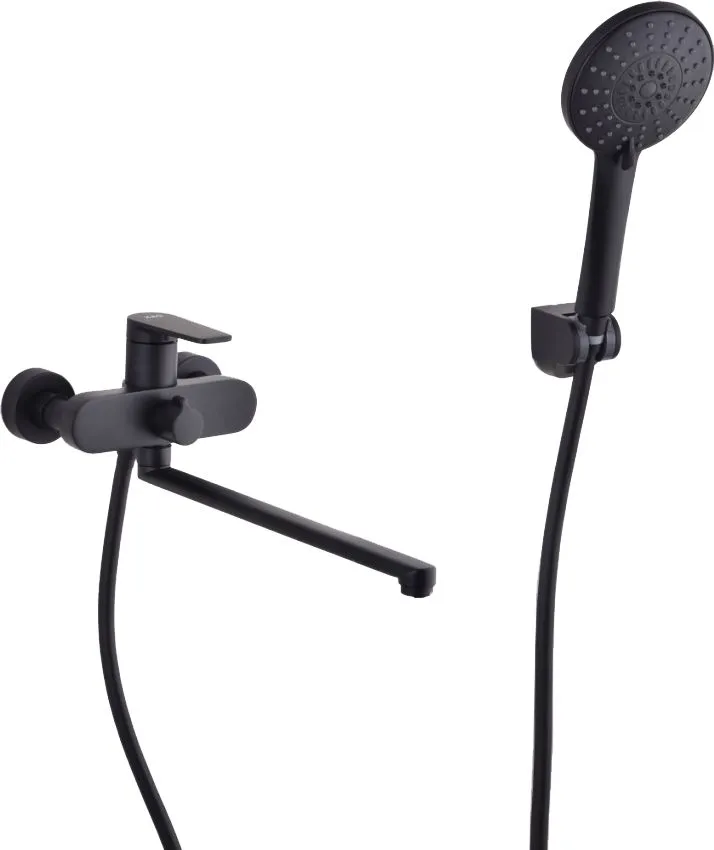 Смеситель для ванны DA1523305 однорычажный длинный излив с лейкой и шлангом цвет черный