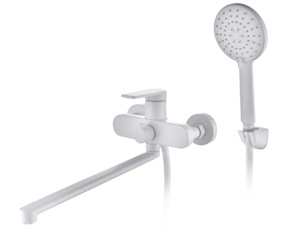 Смеситель для ванны DA1523308 однорычажный длинный излив с лейкой и шлангом цвет белый