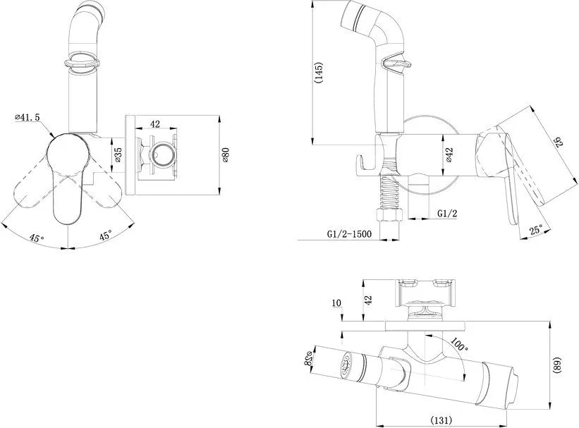 Смеситель с гигиеническим душем DA1394581 скрытый монтаж цвет хром