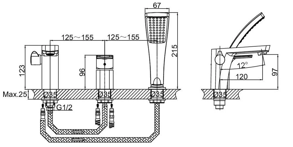Смеситель врезной на борт ванны D&K DA1434901 3 отверстия
