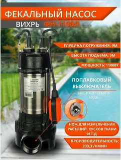Насос фекальный ФН-1100Л Вихрь (1100 Вт., 14 м3/час., Н-9 м., измел. ножи)