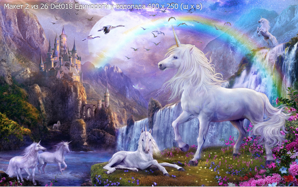 Фотообои 3D Det018 Единороги у водопада 300x240 РАСПРОДАЖА