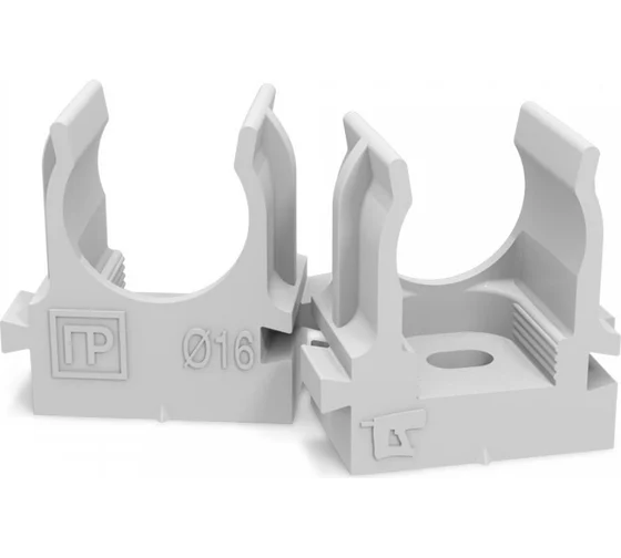 Крепеж-клипса для трубы 16 мм для прямого монтажа (100 шт/уп) серая