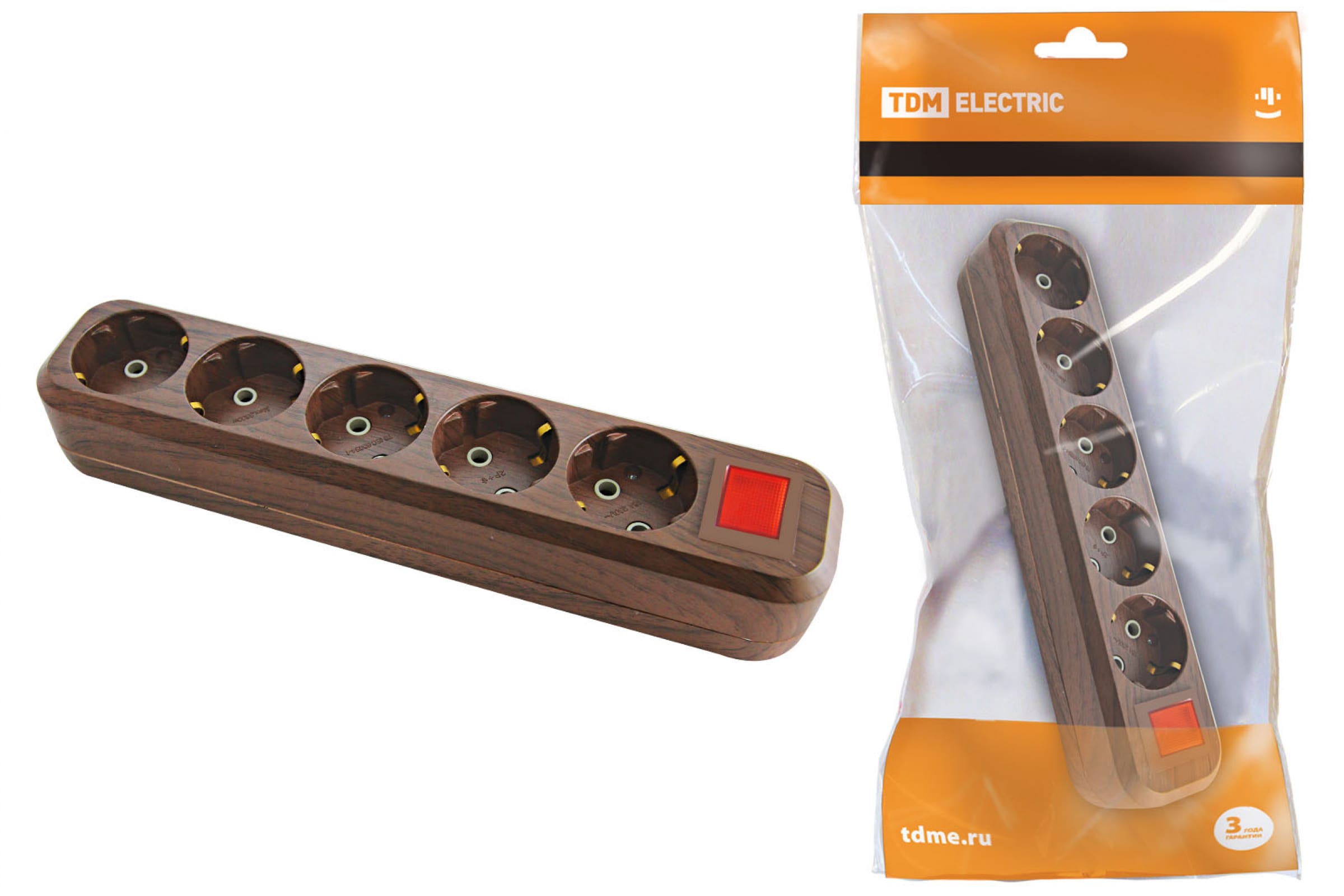 Колодка розеточная 5 гнезд 2П+3 с выключателем16А 250В "Эко" (бук) TDM SQ1806-0069 РАСПРОДАЖА