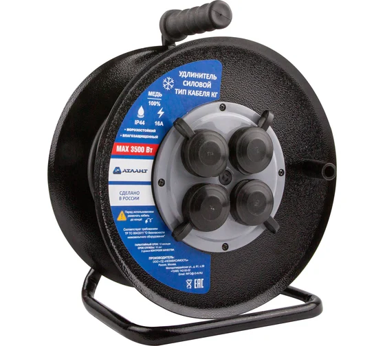 Удлинитель силовой АТОМ КГ 3500 Вт 40м на металлической катушке IP 44 (c/з)