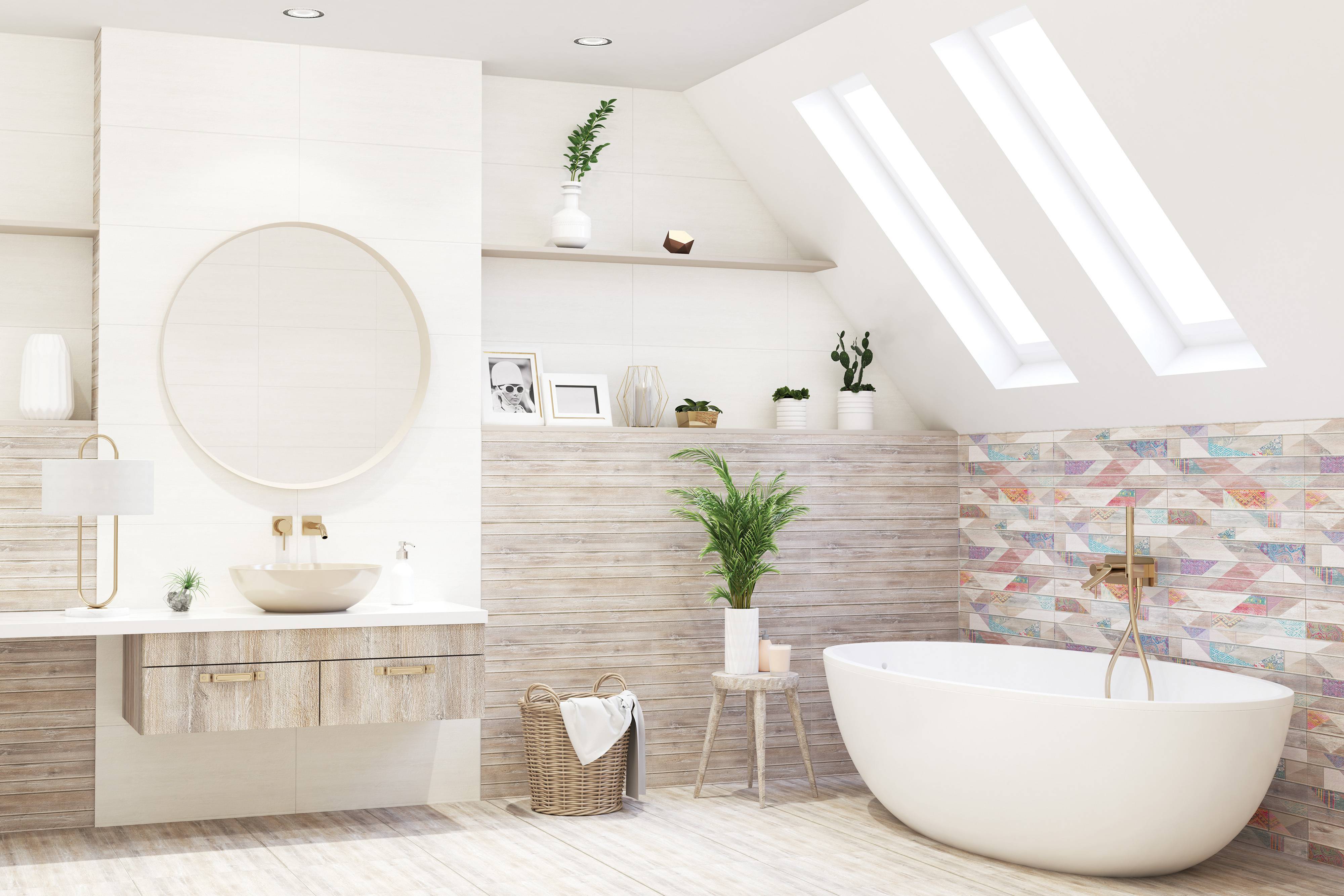 Структурная плита Shabby Grey и Shabby Beige, представленные в темных оттенках, идеально комбинируется с плоской светлой плитой Shabby Marfil, подчеркивая естественность интерьерного оформления. Мягкая цветовая гамма выполнена на матовой глазури с "налетом старины", а фактура дерева усложнена оттиском льняного переплетения.