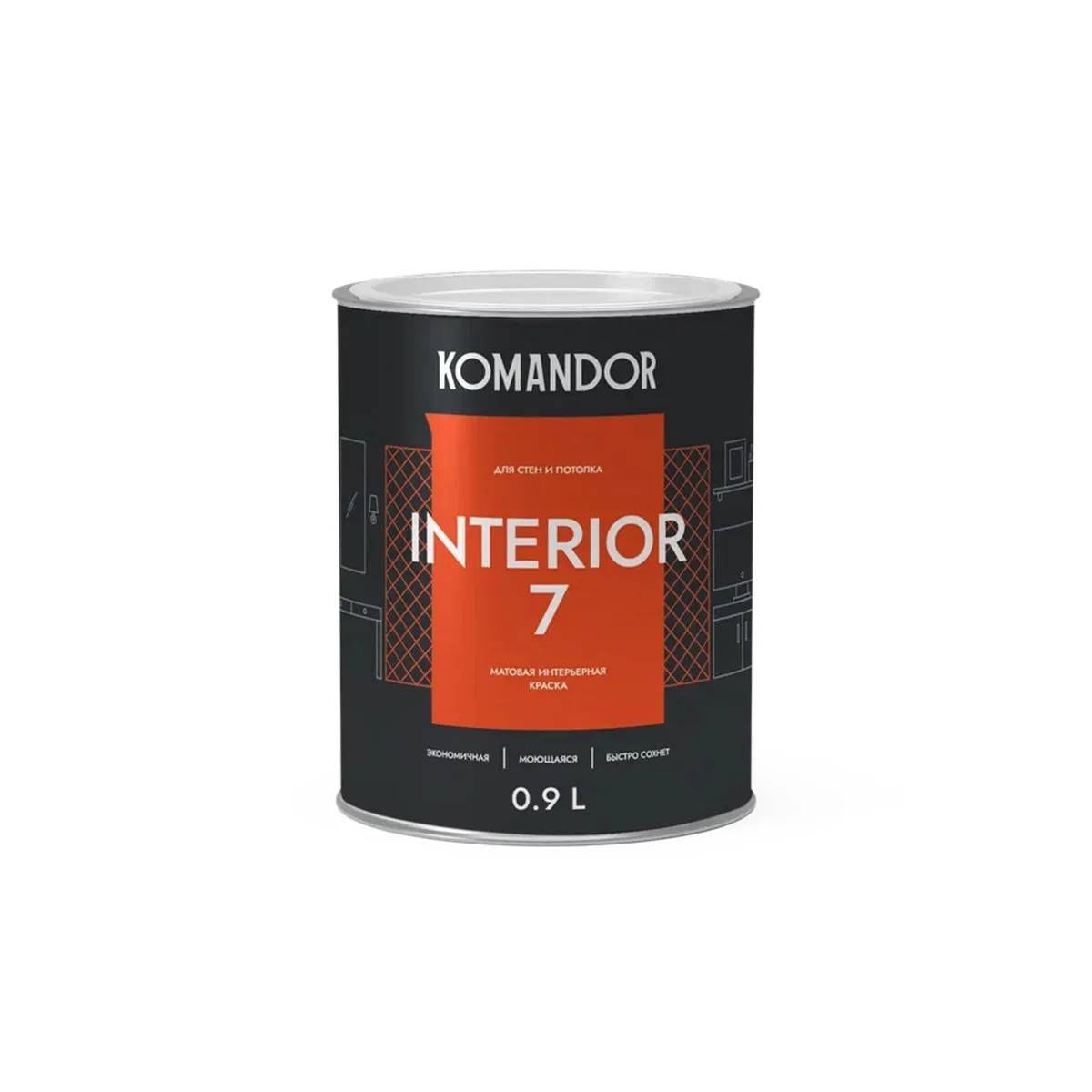 Краска "INTERIOR 7" для стен и потолков база С 0,9 л (1/6) "KOMANDOR"