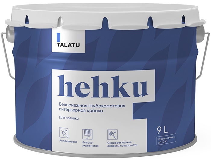 Краска "HEHKU" для потолков белоснежная 9 л (1) "TALATU"