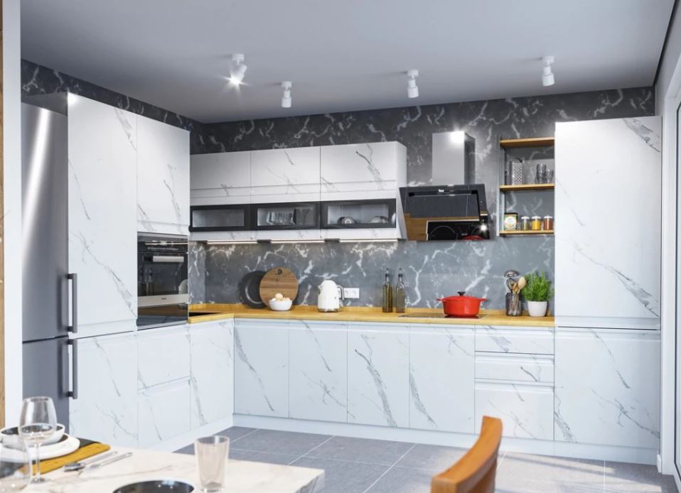 Комплект кухонной мебели СКАЛА Гранит Оникс/ Мрамор Арктик со столешницей Дуб Вотан (2052М)
