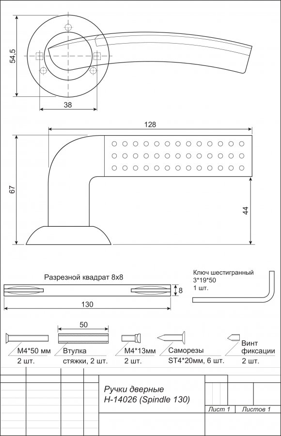 Размер сечения квадрата ручки: 8 ,мм