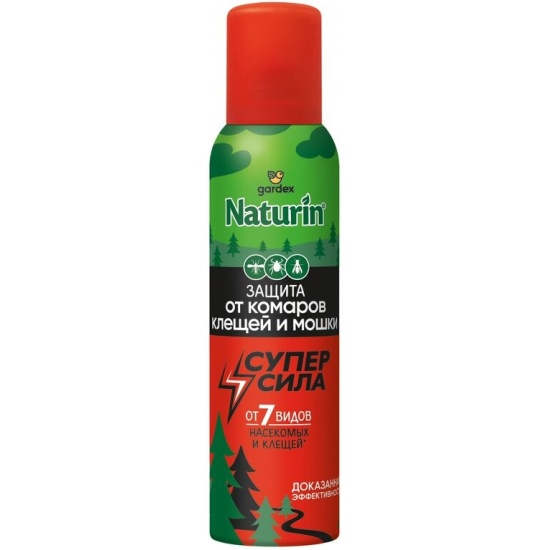 Аэрозоль от комаров, клещей и мошки New, 150 мл Gardex Naturin СУПЕРСИЛА 3 в 1