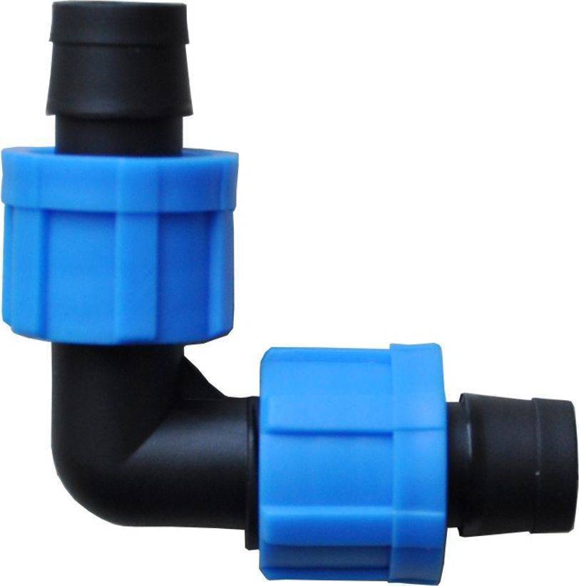 Фитинг-колено зажимное упрощает монтаж оросительной системы. Позволяет производить ремонтные работы при различный повреждениях или при необходимости продлить капельную ленту с поворотом на 90 градусов. Край ленты фиксируется путем затягивания зажима.