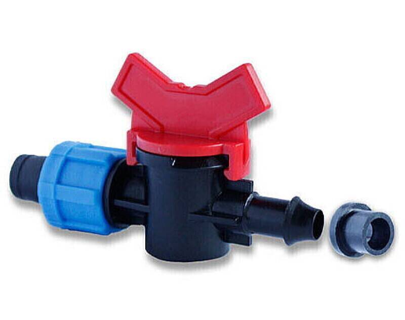В ПНД трубе напротив грядок/гряд сверлом по металлу (диаметр 14-16 мм) просверливаем отверстия. Количество отверстий равняется количеству предполагаемых к укладке поливных лент, а также соответственно, - и количеству грядок. В отверстия вставляются уплотнительные резинки. В отверстие резинки вставляется более тонкой стороной кран. С более толстой стороны крана на конус до упора надевается поливная лента. Фиксация ленты производится зажимной гайкой.