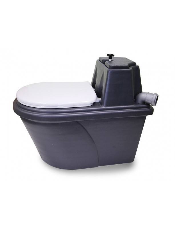 Принцип действия: отходы попадают в накопительный бак, после чего засыпаются торфом. Жидкие отходы постепенно впитываются в торф и частично испаряются через вентиляционную трубу. Если же туалетом пользуется семья постоянно, то торф не способен впитать всю жидкость. Для решения этой проблемы модель оснащена дренажом. Жидкость просачивается сквозь дренаж в нижний отсек и отводится шлангом на улицу. Твердые отходы, благодаря полезным бактериям, находящиеся в торфяной смеси, перерабатываются в компост. После заполнения нижней емкости содержимое выгружают в яму или компостер. Спустя 2 года, именно столько занимает полный цикл компостирования, торф с фекалиями превратится в прекрасное органическое удобрение и подкормку.