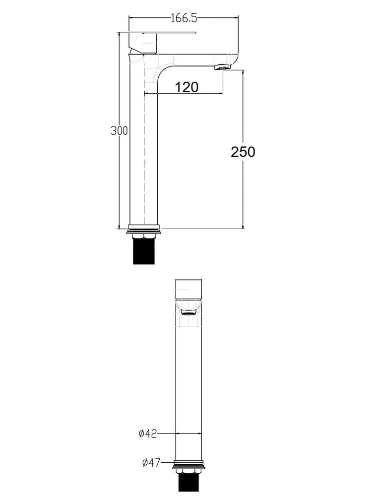высота излива — 250 мм;