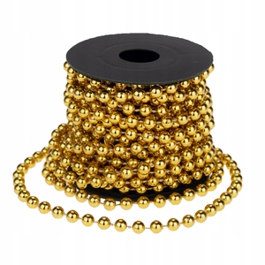 Цепочка декоративная «Бусы» от польского производителя Goralmet состоит из полых стальных шариков, подвижно скрепленных кусочками проволоки. Шариковая цепочка цвета "золото" применяется для изготовления брелков, сувениров, игрушек и для украшения новогодней елки.