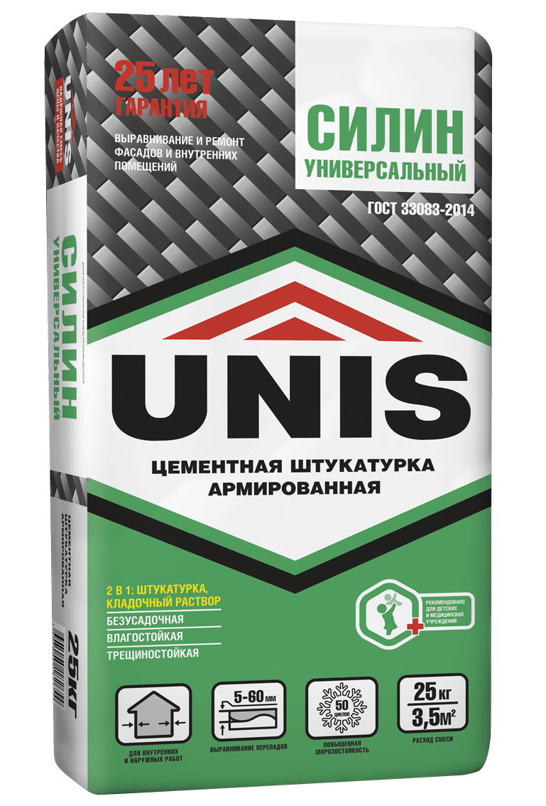Штукатурка цементная Unis Силин универсальный армированный ЗИМА 25кг (48шт/под)