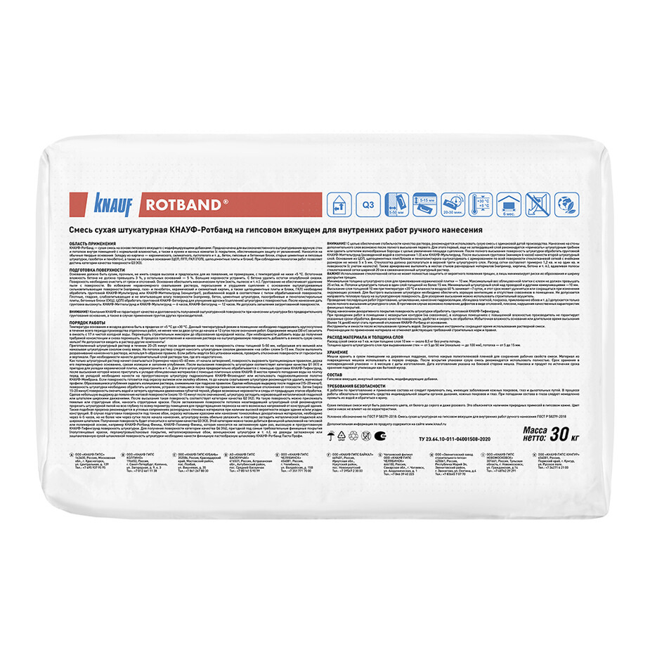 Штукатурка гипсовая Knauf Ротбанд Серый Новомосковск 30кг (40шт/под)