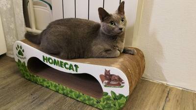 Изготовлена из горфрокартона, что еще больше привлечет к ней Вашего любимца – ведь все без исключения кошки очень любят поваляться на бумаге! Привязанность кошки к бумаге объясняется просто: кроме шуршания и мягкости, она дает столь любимое тепло, аромат и уют дерева.