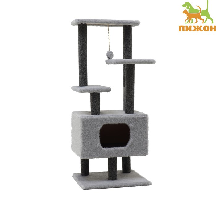 Домик для кошек с когтеточкой, 54?34?80 см, с овальной полкой, пушистый мех, джут, серый