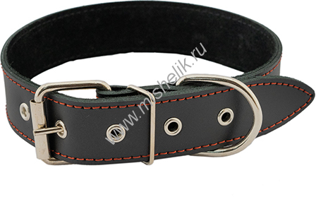 HOMEPET 35 мм 49-61 см ошейник для собак кожаный простой двойной простроченный двухслойный черный