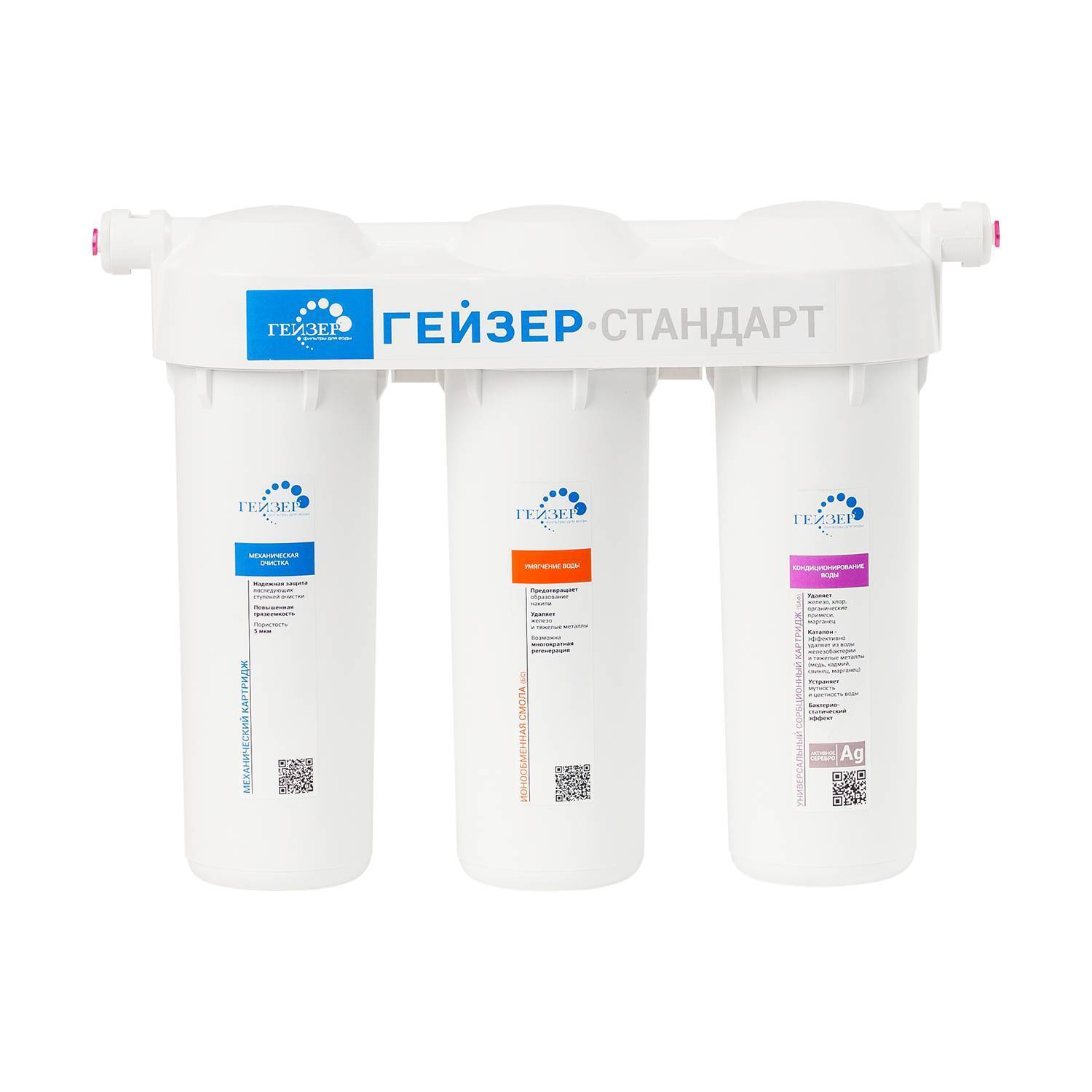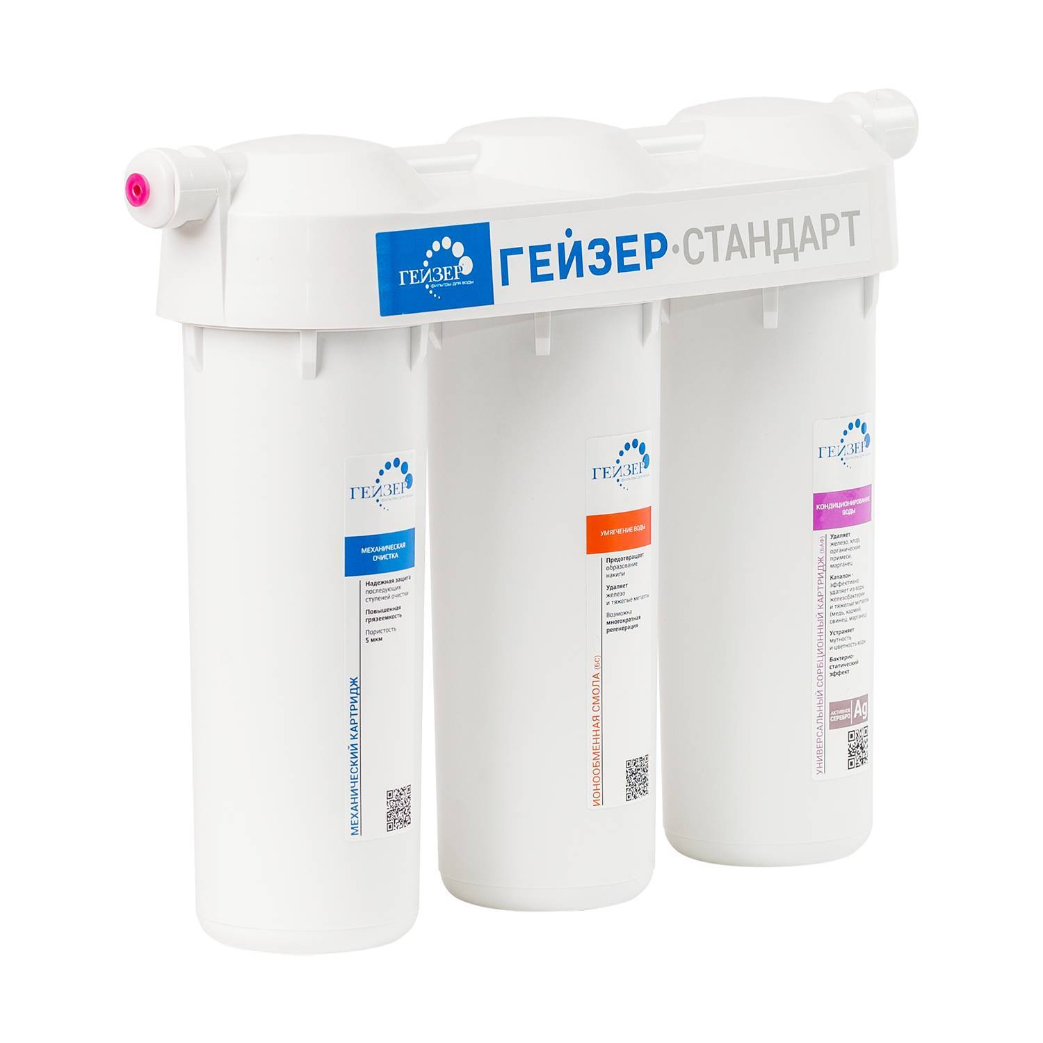 Фильтр Гейзер Стандарт для жесткой воды состоит из 3 картриджей: